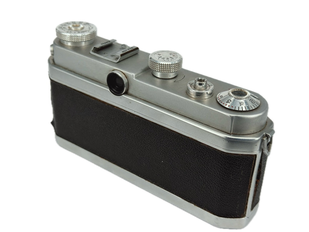 French Leica-ish rangefinder camera paired with a 50mm lens.