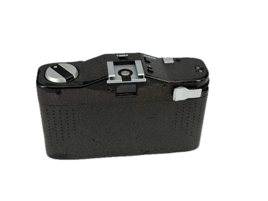 Uber compact Minox 35mm film camera. Uses 4 x LR44 batteries, so it's super easy. Nice lens - and MADE IN GERMANY! Comes with the rare and very powerful MF 35 ST flash. Our technician cleaned it February 2026.